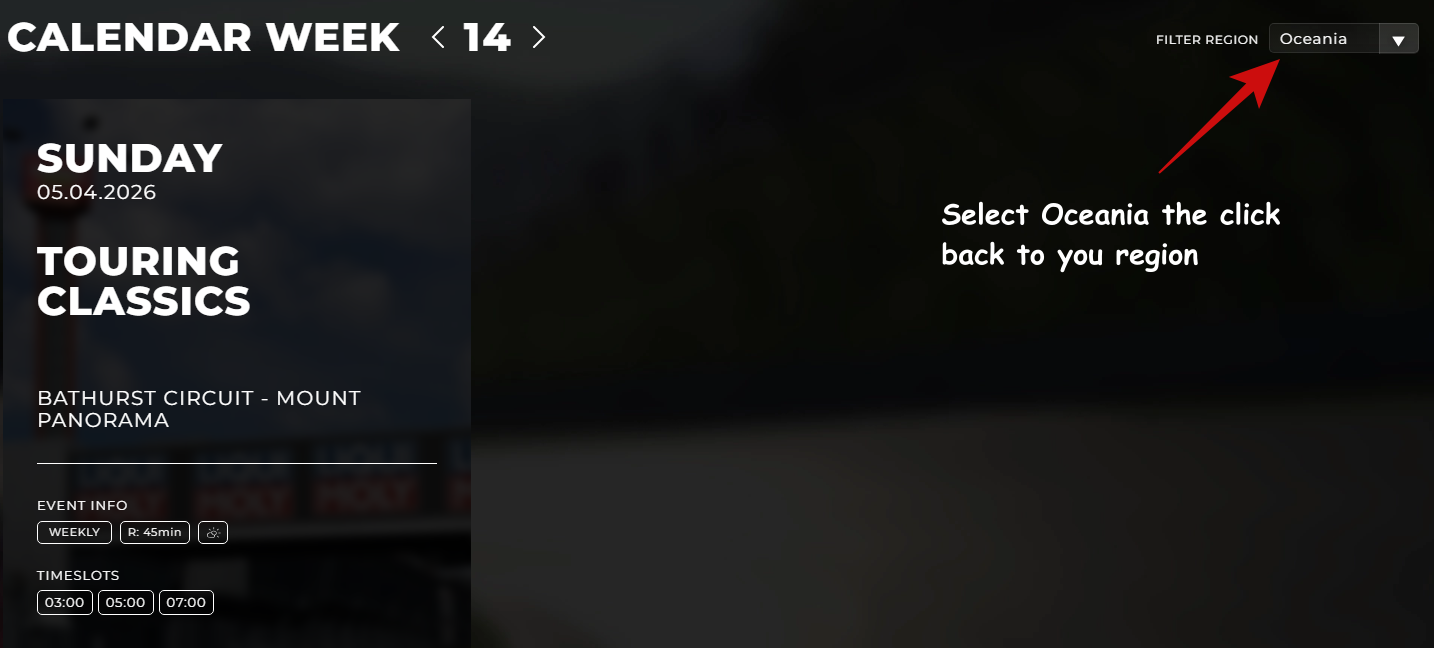 There is a workaround: go to weekly, then Set location to Oceania. Then you see the race, click on it and then change the location back to yours.