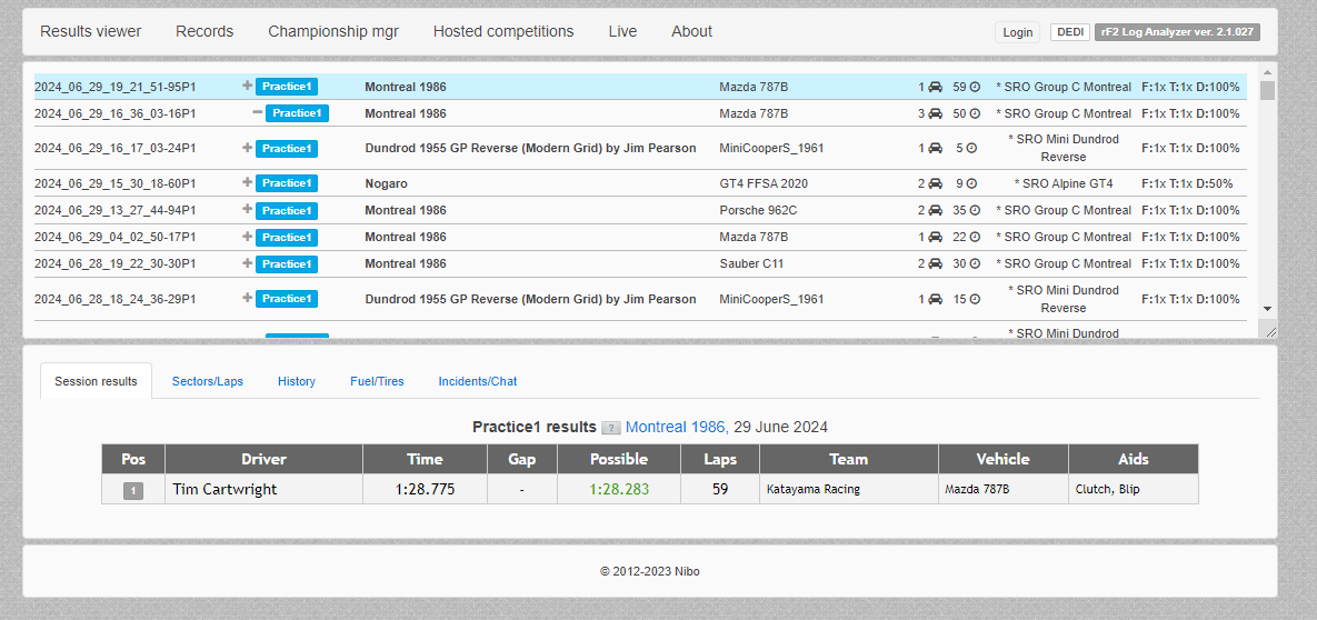 I ran some laps on this server earlier today and noticed my time never posted to the session results. No big deal I just wanted to mention it in case times should be posting to this track ? Thanks. I've loved racing this car in the past with SRGP and glad to see you guys using it!
