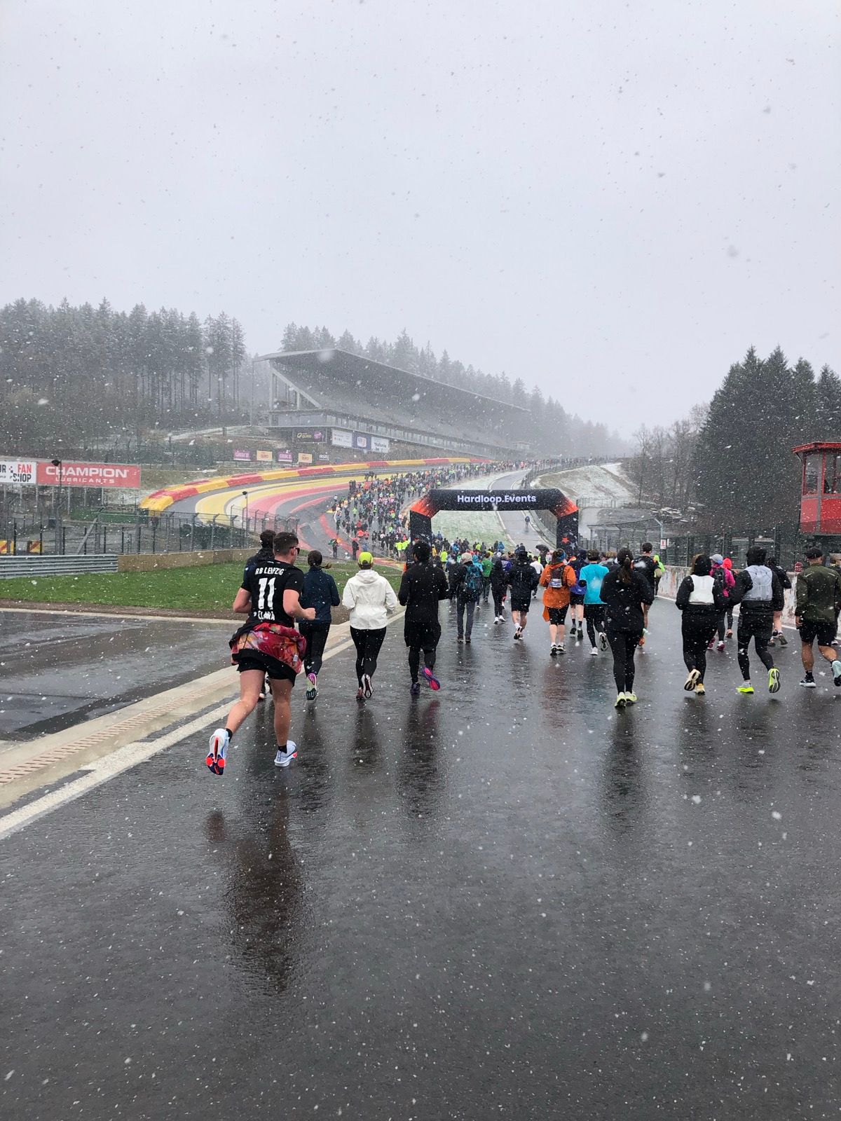 Hi, Thought I would post this here, might be of some interest to people, may even want to have a go themselves. I've been wanting to run the Spa circuit for some time, circuit wise I've managed to run Silverstone, Oulton Park, Goodwood, Thruxton, and Brands Hatch. The Spa event was celebrating it's 10th Anniversary this year and it sells out pretty quickly. I wasn't sure if I could afford the travel but when I did some research I realised I could do the trip reasonably cheaply on the Eurostar so that was what I decided upon. First flight of the day out of Guernsey to London City Airport, London underground to St. Pancras, Eurostar to Brussels-Midi, train to Verviers-Central and then bus to my hotel near the track. All went according to plan which I'm surprised about! Weather was ok but was due to change (will come to that in a moment...) Absolutely poured with rain the day before but sunshine in the afternoon. However it was quite cold. Then at about 7pm at night I got a notification on the phone "Stavelot - Heavy snow due this evening". Sure enough I looked out the window to find snow falling! This carried out throughout the night and when I woke in the morning I found lots of snow around, thankfully it was too wet for the snow to settle on the road and it wasn't cold enough for ice which at least was something. When entering the event you had the choice of 7km, 14km, 21km, or 42km. I went for the middle ground and did two laps at 14km. I walked to the track to collect my race bib and t-shirt, lockers were available for your belongings which was useful and the organisation was brilliant. The 14km group started at 12.00pm and after being brought through the F1 pits we walked down the pitlane onto the grid and away we went! I wonder if this was done deliberately to make sure we weren't standing in the cold too long. Good call if it was. It was very snowy! I just tried to take it as easy as possible, it wasn't windy just lots of snow falling. Obviously Eau Rouge & Raidillon were pretty testing but the Kemmel Straight just kept going. Thankfully it's the same angle all the way rather than getting steeper as you climb. Then once you reach the highest part of the track it descends back down, finally you climb back up to the Bus Stop and finish the lap. Run went even better than I thought, apart from a small walking break at the second lap of Raidillon I ran the whole 14km distance. It was an amazing experience to run such an iconic track, I will remember it forever. I may even try again another year and hope for sunshine! My only mistake was food supplies, I got by but of course at this time of year there is no racing or events. So all the restaurants and shops nearby were closed. Spa is about 50 minutes on a bus, but even there nothing really opened till late in the evening. I was staying in an apartment which was great but I'm so glad I stocked up on some M&S food to take with me on the Eurostar otherwise I would have been really stuck. Make sure I take a fold up bike next time, lol. A few photos below, I did take video (trying out an Osmo Nano) but need to edit it together. My Strava Link https://www.strava.com/activities/17718561811
