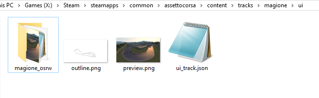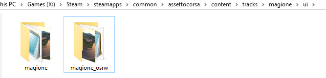 This happens on tracks that only have 1 layout (like Magioni) You need to edit the UI folder. When you have copied the OSRW version in to the folder, your UI folder will look like this.... You need to create a new folder, call it whatever (magione) and then copy the extra 3 files into it Then both tracks will show up in Servermanager